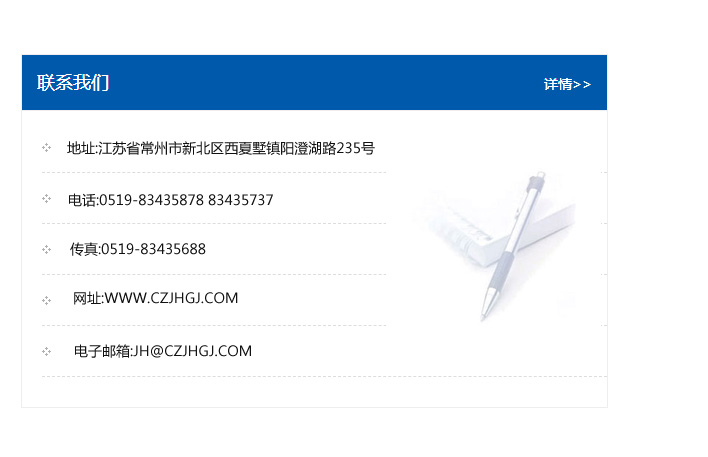 地址:常州市新北區友邦商務大廈1幢16、17層  電話:0519-85101652  傳真:0519-85112595  郵編:213022  網址:www.cz-jiayue_cn.qhdbdfyy.com  郵箱:xiajifengaa@163.com